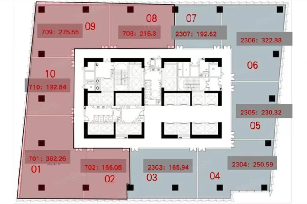 【樓棟數(shù)】總共2棟,1棟7-43層為公寓,2棟7-44層為辦公,1-2樓為商業(yè),3-5樓為創(chuàng)意辦公