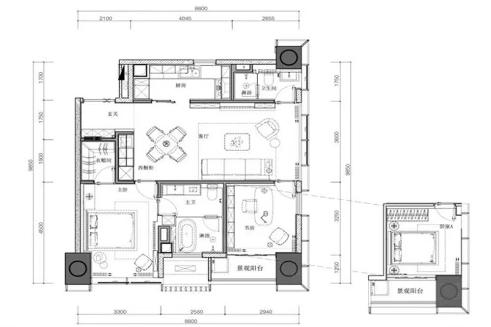 建筑呈點狀布局,無遮擋視野。純住宅,無其他業(yè)態(tài)干擾,生活方式更純凈,營造臻稀無雙的圈層氛圍。建面約66-104㎡23層墅境臻品,引全城爭藏。